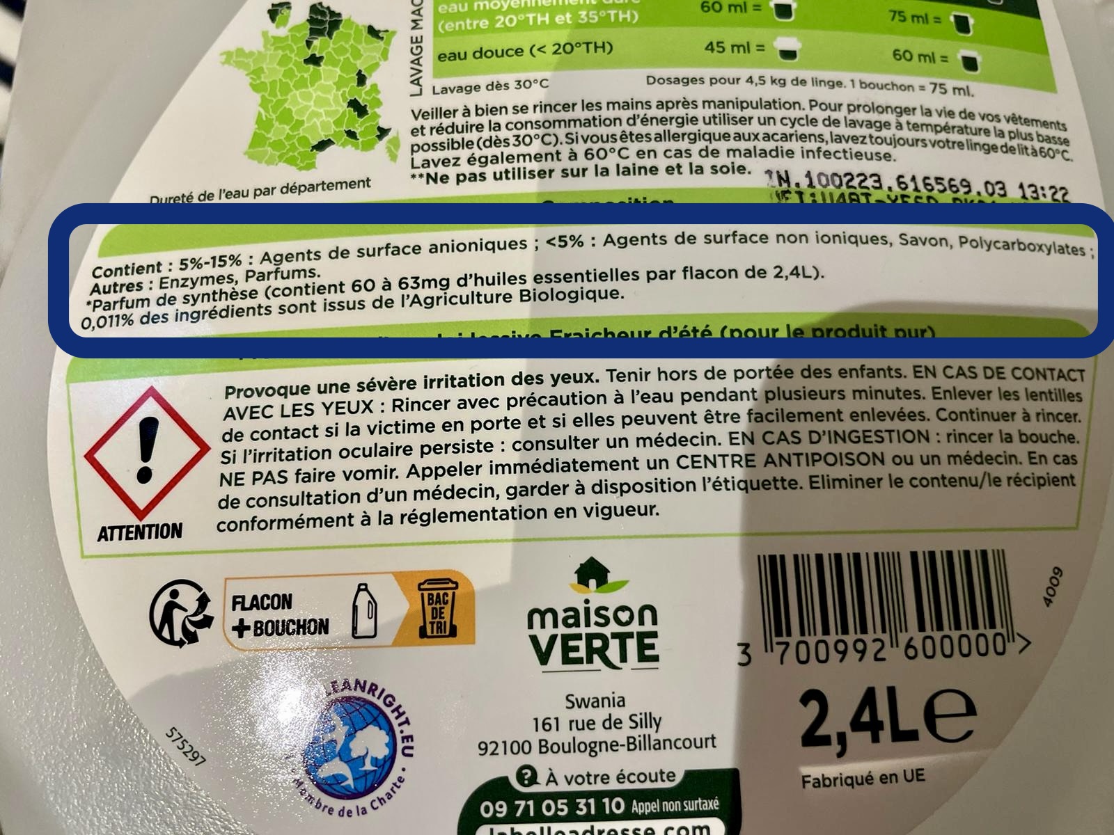 Normally, we buy soaps and detergents that are Castille soap or Marseille soap. Both are used to make great laundry detergents with a simple list of ingredients. For example, the detergent I bought this week is just Marseilles soap, baking powder and water. Really simple. You can find it anywhere here, but there are detergents with harsher chemicals offered at Biocoop, an organic supermarket chain.