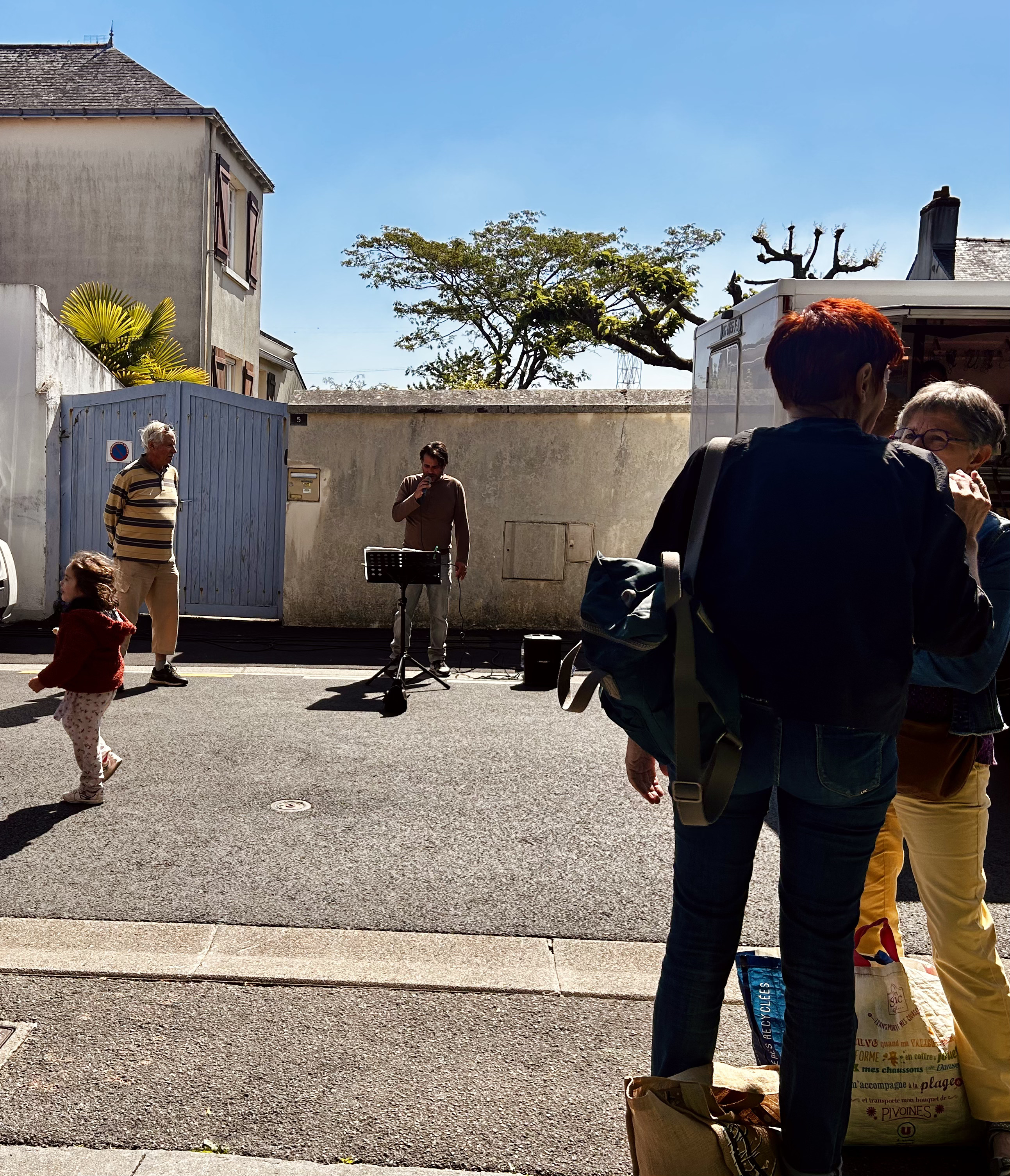 Near him, a karaoke guys sets up. Usually solo, sometimes in pairs, with portable amps and cracked laptops, singing unsteady French ballads.