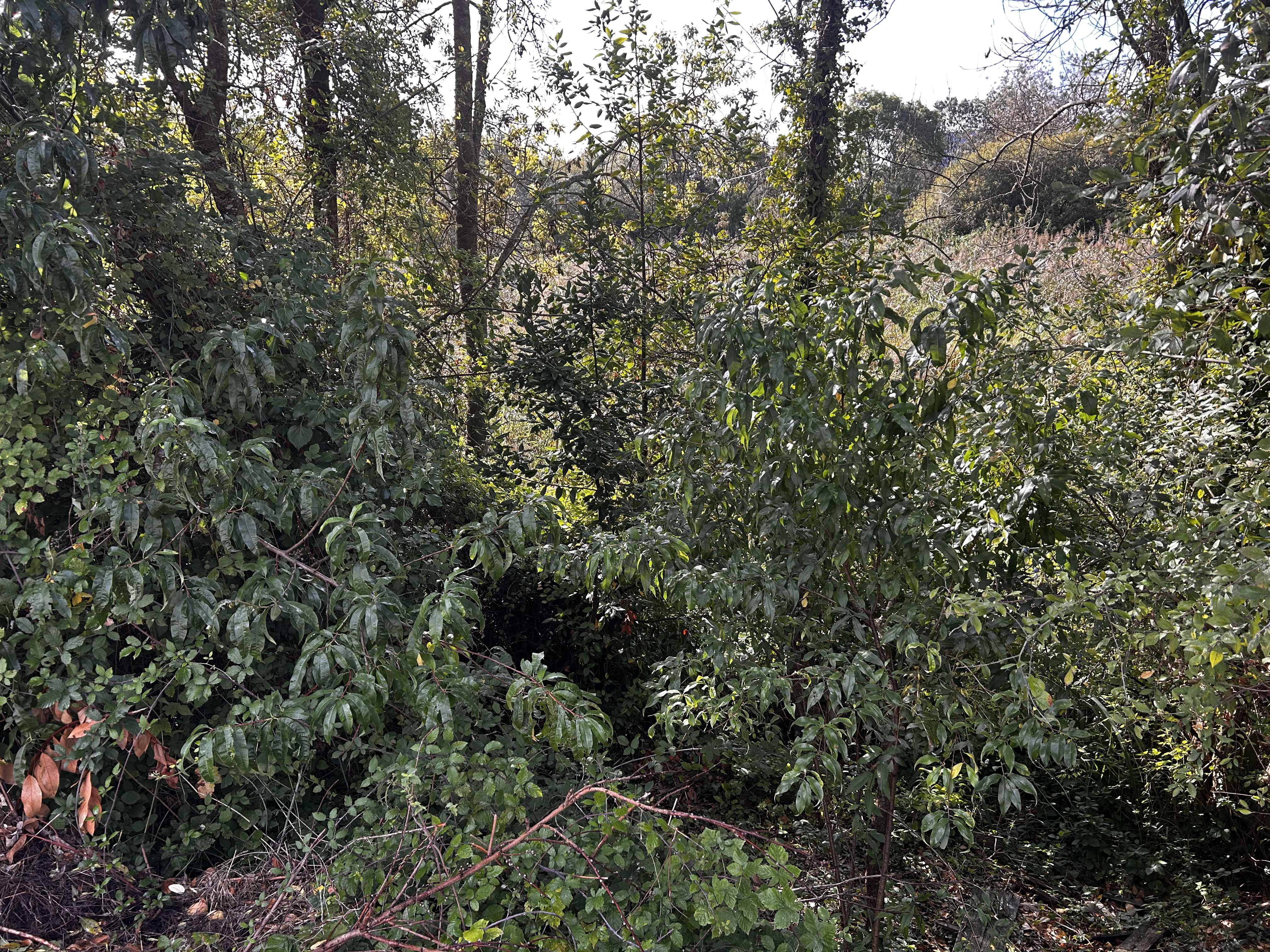 But I also want to know what’s in my own neighborhood. A tree in a fifteen-square-foot patch of dirt near us flowers in spring and drops its fruit in late summer. I like to watch the cycle