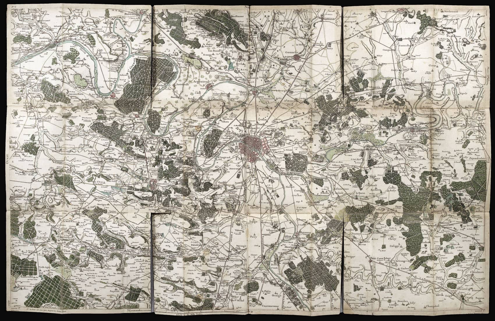 The Carte de Cassini was a monumental mapping project undertaken by four generations of the Cassini family: with Cassini I, the astronomer, developing triangulation as a technique, followed by Cassini II, Cassini III and Cassini IV, who complete the map. The bulk of the research was under Jacques Dominique Cassini (Cassini III) and Jean-Dominique Cassini (Cassini IV) from 1756 to 1815. It culminated in the first detailed map of France and, quite possibly, of any country in the world. There have been few journals of these travels, but researchers likely covered tens of thousands of miles checking and rechecking as they mapped France’s 200,000 square miles of territory.