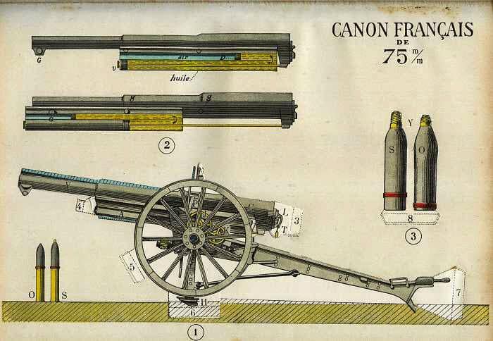 The French 75 is named after the powerful French 75mm field gun and for the its "explosive" kick. The 75 ("Soixante-Quinze") was the first rapid fire artillery, delivering 15–30 shells per minute, depending on the crew, as its recoil mechanism allowed devastating barrages of everything from shrapnel to explosives to poison gas.