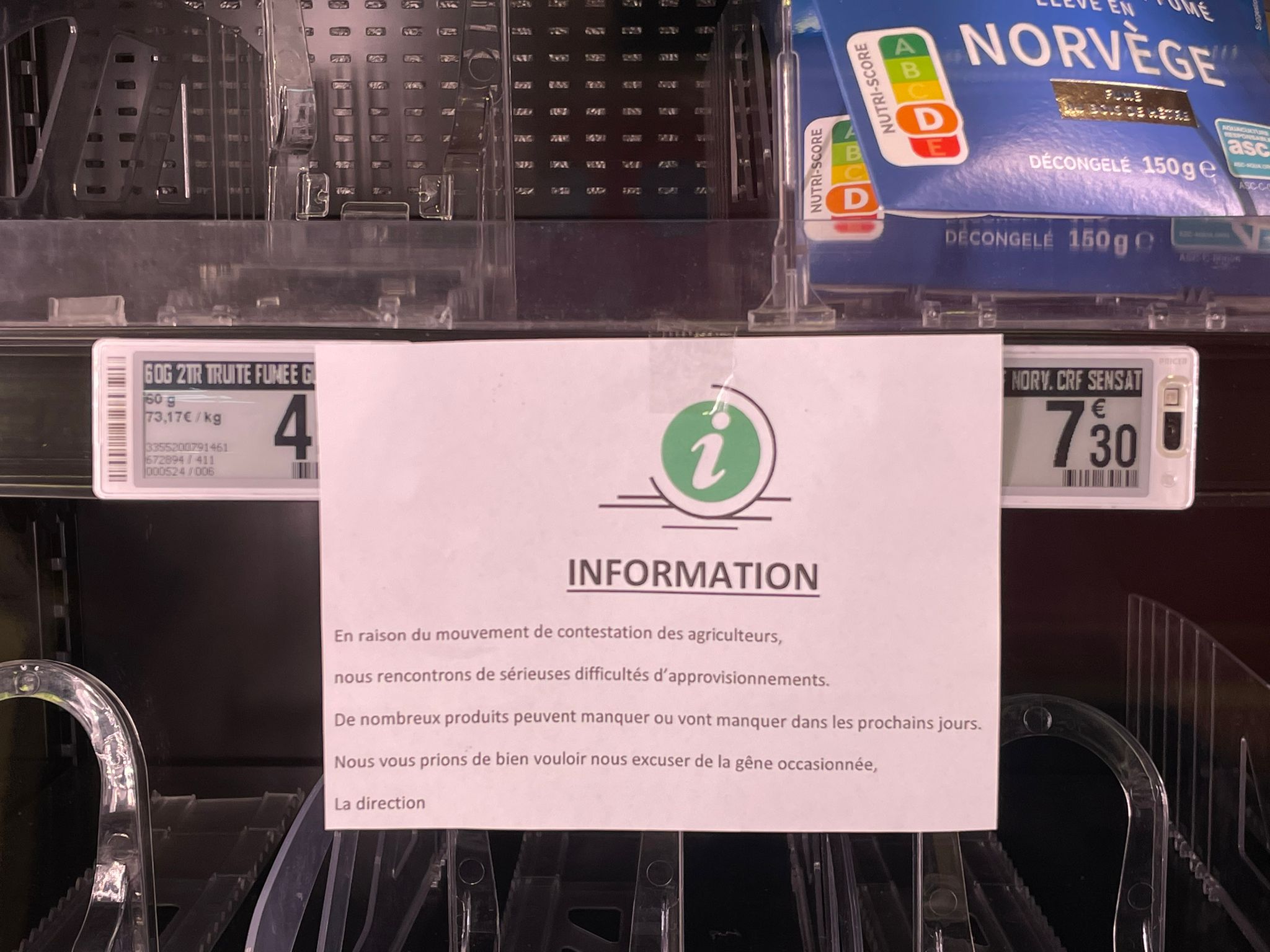 We approached a young man leaning on a row of 30 shopping carts, clearly part of the blockade. I did my best in broken French: